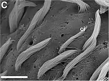 This is epithelium with cilia and is found for example in the trachea, where it is tall and narrow and the cilia is used to waft mucus along the trachea.