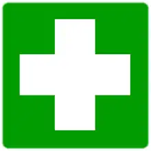 The true internationally accepted symbol for first aid is a white cross on a green background.