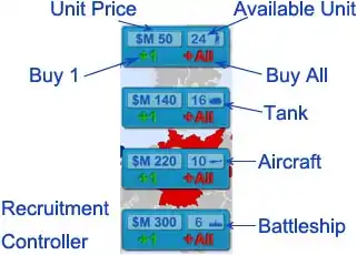 There are 4 buttons in Recruitment Controller, respective for Infantry, Tank, Aircraft and Battleship.