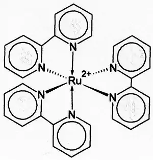The chemiluminescence involving tris(2,2'-bipyridyl)ruthenium(II), [Ru(bpy)3]2+, is most interesting. It involves the oxidation of [Ru(bpy)3]2+ to [Ru(bpy)3]3+, which is followed by reduction with an analyte species to produce an emission of light, thus:
