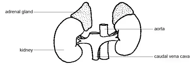 The adrenal glands are situated on the cranial surface of the kidneys (see diagram 16.6). There are two parts to this endocrine gland, an outer cortex and an inner medulla.