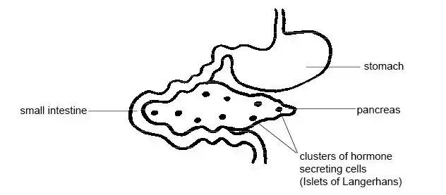 - The pancreas that lies in the first bend of the small intestine produces insulin that regulates blood glucose levels.