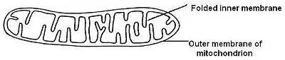 Mitochondria (singular mitochondrion) are oval or rod shaped organelles scattered throughout the cytoplasm. They consist of two membranes, the inner one of which is folded to increase its surface area. (Diagram 3.12)