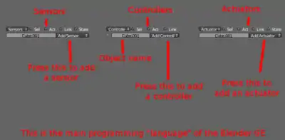 Logic is sort of the programming language for Blender. You have the sensors on the left that activate the controllers in the middle which activate the actuators at the end that do something. To add a brick click add select the type. Do this all along the line then connect them by dragging a "Wire" from the dot at the end and beginning of each brick.