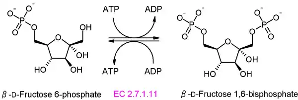 Step 3: Second phosphorylation catalysed by phosphofructokinase: