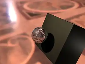 - Give the sphere a mirrored material : go to the Shading -> Material panel (F5) and find the Mirror Trans buttons.