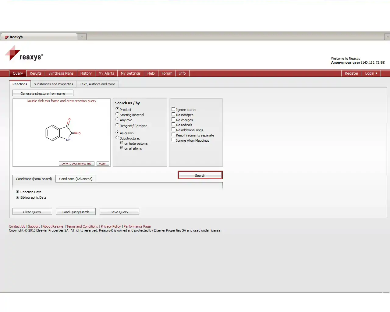 Structure Searching on Reaxys