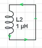 The equivalent inductor discharging circuit after the push button switch is released.