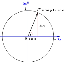This equation allows us to view sinusoids as complex exponential functions. A cyclic function represented as a voltage, current or power given in terms of radial frequency and phase angle turns into an arrow having length (magnitude) and angle (phase) in the phasor domain/plane or a point having both a real () and imaginary () coordinate in the complex domain/plane.