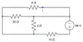 Find the current through the 4 ohm resistor assuming moving left to right is positive: