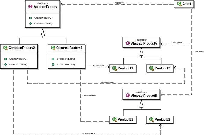 - The client code has no knowledge whatsoever of the concrete type, not needing to include any header files or class declarations related to it. The client code deals only with the abstract type. Objects of a concrete type are indeed created by the factory, but the client code accesses such objects only through their abstract interface.