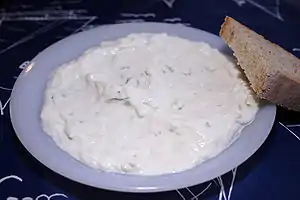 - After refrigerating, add dill and cucumber into bowl and mix with a whip until smooth.