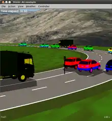 Disim is a lightweight microscopic highway traffic simulator that enables the emulation of a complete traffic over several kilometers. It allows the definition of a specific road network under variable entry rates and road conditions. Disim also offers the possibility to add road sensors to measure the density, speed and traffic flow and log this data. Variable speed limits as well as ramp metering are supported natively.