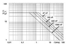 - ↑ Film Capacitors, TDK Epcos, General technical information