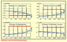 - ↑ Vishay BCcomponents, Introduction Aluminum Capacitors, paragraph "Storage", Revision: 10-May-12, Document Number: 28356, pdf