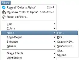 First, we fill the canvas using the hurl filter (Filters > Noise > Hurl). Set Randomization (%) to 100.