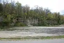 During the last ice-age the Ledge help shaped what is now the Bay of Green Bay, the western shore of Lake Michigan, and Lake Winnebago. The Ledge’s ability to resist erosion from repeated glacial advance and retreats is how rock cliffs have become exposed from Door county and the Northeastern shores of Lake Winnebago. Hard limestone called Niagara dolomite is what the Ledge consists of and has been around for 400 million years.[2] Once ancient seas receded thousands of years ago the edges of the dolomite became exposed to weathering giving the Ledge cliff like faces. Under the dolomite is soft shale that has a fast erosion rate and eventually breaks off and leaves a new cliff edge each time. Another process that helped shape the Ledge is ice. Glacial ice that was miles thick leveled the cliff in some areas while leaving crevasses and large fissures else where. These giant glaciers shaved down and smoothed out what was once a higher and more jagged series of cliffs and left behind crevasses and caves we see today.