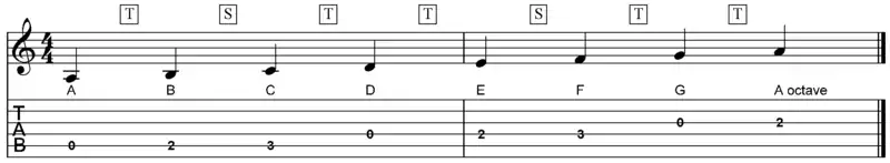 The scale below uses the "tone-semitone" method: