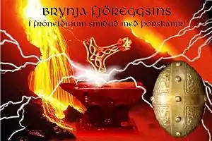 - Brynfjöregg: The armored fjöregg (vital egg). A 'vital egg' (fjöregg) is the equivalent of a ‘life-thread’ in Icelandic symbolism. It is a familiar motif in Icelandic folklore, where one can destroy trolls, giants, etc., by finding where their "life-egg" (fjöregg) is hidden and hurling it at them so that it hits them in the face, or on the temple or nose, or (most frequently) between the eyes or on the forehead. These life-eggs came in a variety of colors, some were golden. Many Icelanders still consider their language as the ‘vital egg’ of their culture. When it breaks, the thing it symbolizes dies. The High Icelandic ‘brynfjöregg’ is composed of two viking-helmets forming an oval armor around the egg, symbolizing language protection.