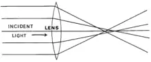 Spherical aberrations on the other hand are a result of that no lenses are perfectly spherical. Thus the light incident on the outer portions of the lens will be bent more than the light incident more in the center. To prevent this an aperture may be used to prevent light from hitting the outer portions of the lens.