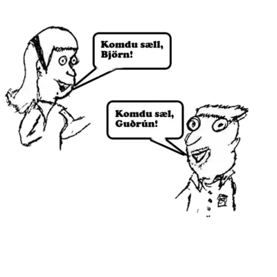 - When talking to or about someone, gender is an important part of Icelandic conversation and speech. For example, when greeting a man, you must say Komdu sæll, blessaður or sæll. To a woman, you would say Komdu sæl, blessuð, or sæl