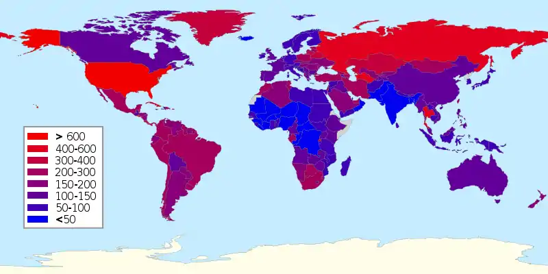 This map illustrates that the U.S. has both a lot of people in prison in sheer numbers but also as a percentage of the population. Comparing incarceration rates by countries goes beyond just reporting incidents of criminal activity (incidents of crime are not much higher in the U.S. than elsewhere) by highlighting differences in the correctional systems of countries. Countries differ in the restrictiveness of their laws and prison sentences. Differences of these types are seen when comparing incarceration rates and populations.