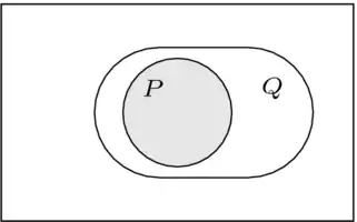 shows that holds whenever does (another phrasing is " is sufficient to give "). Notice again that if does not hold, may or may not be in force.