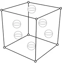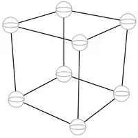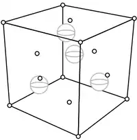 (As before, carbons shown earlier have been reduced here to dots.) The distance along any edge of the cube is Ångstroms. Thus, a natural basis for describing the locations of the carbons, and the bonds between them, is this.