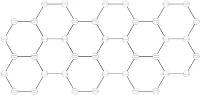 This is a single plane of graphite. A piece of graphite consists of many of these planes layered in a stack. (The chemical bonds between the planes are much weaker than the bonds inside the planes, which explains why graphite writes---it can be sheared so that the planes slide off and are left on the paper.) A convenient unit of length can be made by decomposing the hexagonal ring into three regions that are rotations of this unit cell.