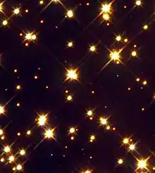 Messier 4 or M4 (also designated NGC 6121) is a globular cluster in the constellation of Scorpius. It was discovered by Philippe Loys de Chéseaux in 1746 and catalogued by Charles Messier in 1764. It was the first globular cluster in which individual stars were resolved.