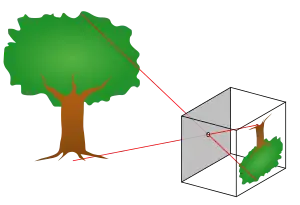 - In a pinhole camera, one of the simplest types of cameras that it is possible to make, the direction of the image is controlled simply by punching a small hole in the camera box which functions to project an inverted image of the subject on to the surface (eg. recording device) inside.