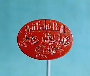 The Grotte Chauvet cave in France includes some of the world's earliest known cave painting, estimated at about 32,000 years old.[2] It is unclear whether these paintings specifically included the device of relative scale, however much of the global body of neolithic art did, ie. the artists sized objects and characters hierarchically according to their spiritual or thematic importance, not their distance from the viewer.[3] It could be argued that theirs was a symbolic perspective, rather than a physical one.
