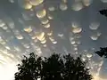 A number of strange cloud formations have been given names and described. The most iconic is likely the Lenticularis clouds, which resemble gigantic circular UFOs. They are a type of altocumulus cloud which are carved by wind into oval-like shapes high in the sky. Virga clouds are thin wispy clouds that drape down from rain clouds. Virga are caused by precipitation that falls from the underside of a cloud, often the moisture evaporates before it reaches the ground, although it can cause a light shower of rain or snow directly below its veil. Mackerel Sky is a sailor term for a sky filled with rows of small cirrocumulus or altocumulus clouds displaying a speckled pattern of clouds that look slightly like the scales of mackerel fish, caused by high altitude atmospheric winds. Mackerel Skies are often used by sailors to forecast rain, since they occur as barometric pressures fall, indicating a low-pressure system is developing. Nacreous clouds are only found in Artic regions, and are high iridescent-colored clouds that form near the top of the Troposphere when the atmospheric is extremely cold. They are most often observed in cold and dry polar regions, and are formed from ice crystals high in the atmosphere. They are often referred to as polar stratospheric clouds, and are sought after by cloud watchers. Noctilucent clouds are scientifically interesting rare clouds that are found within the Mesosphere, at very high altitudes above Earth. They are often observed following a major volcanic eruption, and are thought to be caused by volcanic dust and water vapor that is injected into the high Mesosphere where they form wispy thin clouds best seen near sunset or sunrise. They have been observed after rocket launches, when particulates and water vapor are carried high into the atmosphere from the rockets as they combusted fuel during lift off. Mammatus clouds are pillow-like clouds that can form below cumulonimbus clouds, the term comes from the Latin word for breast or utter, mamma. Kelvin–Helmholtz clouds are caused by velocity differences between two layers of the atmosphere, which results in wave-like clouds that resemble crashing ocean waves. They are named after English physicist Lord Kelvin and German physicist Hermann von Helmholtz who both described the physics of these wave formations in the 1860s and 1870s. Arcus clouds are a rare storm clouds that rolls across the sky. They are associated with cold fronts and thunderstorms, which cause the clouds to appear to roll over the landscape. They are known by other names, including Roll clouds, Shelf clouds, or Volutus clouds. Arcus clouds are related to the phenomena of rolling giant dust clouds called haboob, which comes from the Arabic term for blasting or drifting. Haboobs form where strong gushes of wind blow across an arid landscape lifting dust and particles into the air. They proceed thunderstorms and advancing lower pressure fronts, which bring strong winds. Haboobs can cause respiratory problems since these airborne dust particles can be breathed in by people trapped in these storms. Sun dogs, or parhelion are strange and rare atmospheric events that cause the sun to appear to have two bright spots that flank the sun on either side. These sun dogs are caused by ice crystals within cirrus or cirrostratus clouds reflecting a large halo around the sun around 22 degrees to either side. These Sun dogs can be particularly bright when the sky contains thin cirrus clouds which reflect the sunlight passing through them.