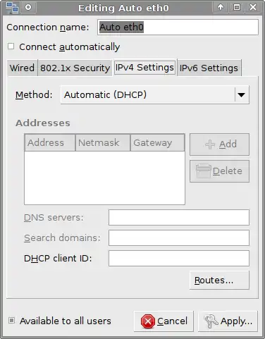 Wired Connection using Network Manager applet