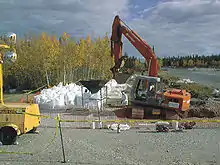 Although not significantly radioactive, uranium mill tailings are waste. They are byproduct material from the rough processing of uranium-bearing ore. They are sometimes referred to as 11(e)2 wastes, from the section of the U.S. Atomic Energy Act that defines them. Uranium mill tailings typically also contain chemically hazardous heavy metals such as lead and arsenic. Vast mounds of uranium mill tailings are left at many old mining sites, especially in Colorado, New Mexico, and Utah.