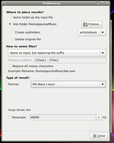 - 2. Run it from: Menu-> Multimedia-> Sound Converter.