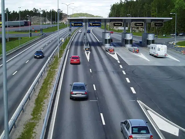 Toll road in Svinesund, at the Swedish side of the border between Sweden and Norway.