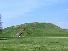 Cahokia was one of the great centers of Mississippian culture and its largest settlement of Mississippi. The focal point of the settlement was the ceremonial mound called Monk's Mound. Monk's Mound was the largest mound ever constructed by mound-building people and was nearly 100 feet tall and 900 feet long. Excavation on the top of Monk's Mound has revealed evidence of a large building - perhaps a temple - that could be seen throughout the city. The city was spread out on a large plain south of Monks mound.