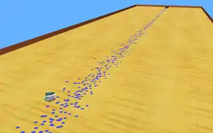 Webots odor simulation with a arena of 16 m by 4 m (laminar wind flow), an odor source and a smelling Khepera III robot.