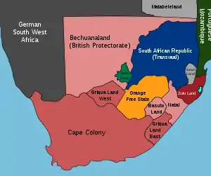 The Dutch first settled in what became Cape Town in 1652. They set up home in the Western Cape, but ended up fighting with the people who already lived there, the Xhosa, over rich land that could grow good crops. In 1806 the Cape became part of the British Empire after the Napoleonic Wars. During the early 19th century, in the southeast, the Zulu Empire began conquering neighbouring tribes and clans, who fled to nearby areas and two million people died fleeing from the deadly fighting. Meanwhile, the descendants of the Dutch settlers, who became known as Boers(Farmers) were angry with British rule and moved to the east, creating their own countries: Natalia, the South African Republic (Transvaal) and the Orange Free State. By 1902, the British had taken over all of modern South Africa.