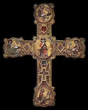 Crucifixion is a form of execution that was practiced by the ancient Roman empire; the person to be killed is attached (often nailed) to a cross and left to die. A cross is a common symbol of Christianity. The Cross may be shown as a simple shape, or may be shown with a likeness of Jesus Christ attached to it. A Christian cross with a likeness of Jesus attached is called a crucifix.