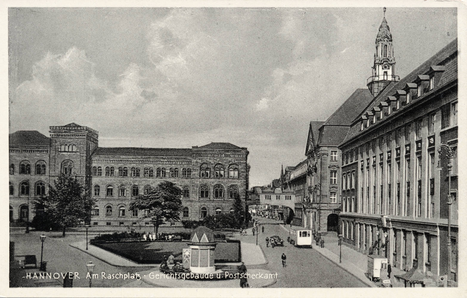 Mit der Einrichtung des Postscheckverkehrs am 1. Januar 1909 nahmen 13 Postscheckämter den Betrieb auf, darunter das Postscheckamt Hannover mit 70 Beschäftigten im Gebäude des Hauptpostamts am Ernst-August-Platz. Es war zuständig für die Bezirke der Oberpostdirektion Hannover, der Oberpostdirektion Braunschweig, der Oberpostdirektion Minden und der Oberpostdirektion Oldenburg. Ab 1925 hatte das Postscheckamt seinen Sitz in einem Gebäude am Raschplatz[1][2], das 1982 abgerissen wurde.[3] Zwischen 1926 und 1935 führte das Postscheckamt die Maschinenbuchung ein. Durch den sprunghaft angestiegenen Postscheckdienst wurden 1951 in Braunschweig und 1954 in Bielefeld Außenzahlstellen eingerichtet. 1967 hatte das Postscheckamt rund 1800 Mitarbeiter und führte über 250.000 Konten.[4]